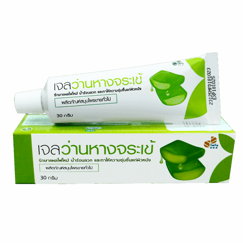 ชื่อผลิตภัณฑ์     :    เจลว่านหางจระเข้ ขนาดบรรจุ        :    30 กรัม/หลอด เลขทะเบียนยา   :    G 418/41 ใบอนุญาตเลขที่ ฆท. 1779/2557