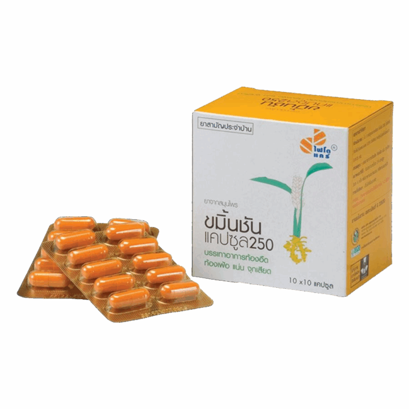 ชื่อผลิตภัณฑ์    :   ขมิ้นชันแคปซูล 350 มิลลิกรัม ขนาดบรรจุ       :   10×10 แคปซูล/กล่อง เลขทะเบียนยา :   G447/41
