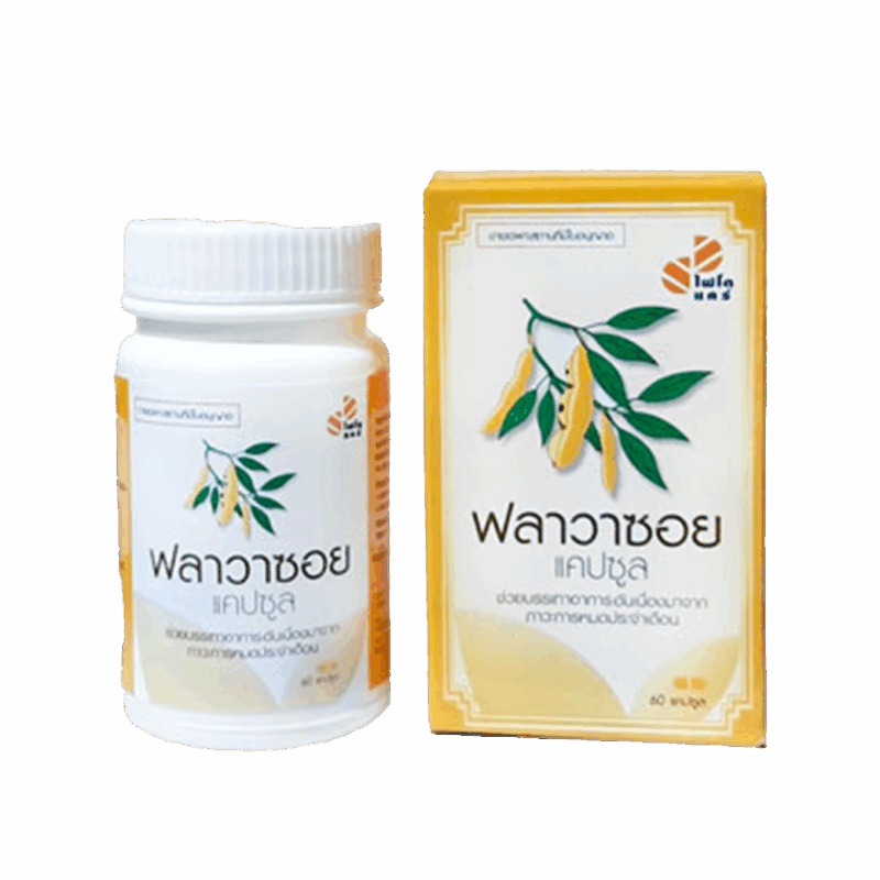 ชื่อผลิตภัณฑ์      :  ฟลาวาซอย แคปซูล ขนาดบรรจุ         : 60 แคปซูล/ขวด เลขทะเบียนยา   :   G 357/45