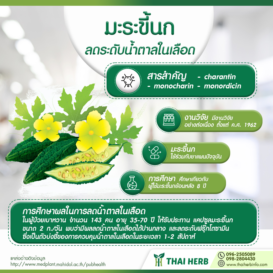 - สุภาภรณ์ , อำนาจ , ณัฐดนัย. วารสารเภสัชกรรม. ประสิทธิผลของแคปซูลมะระขี้นกต่อการควบคุมระดับน้ำตาลในเลือดในอาสาสมัครที่มีภาวะก่อนเบาหวาน, 2564.